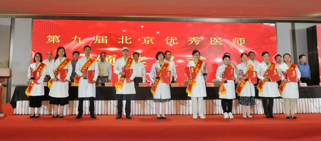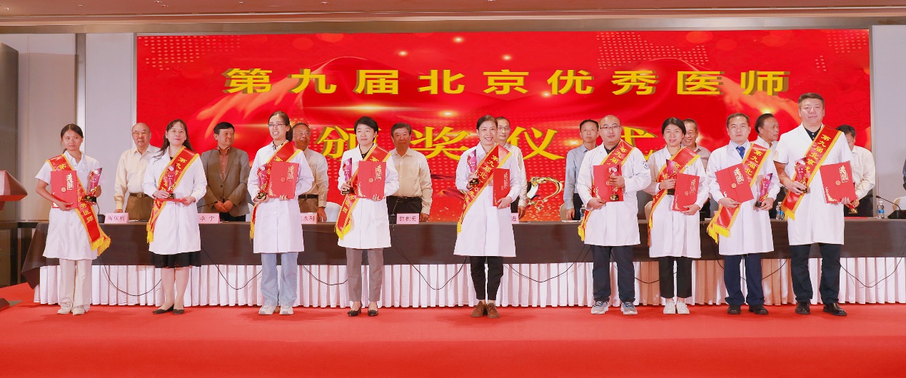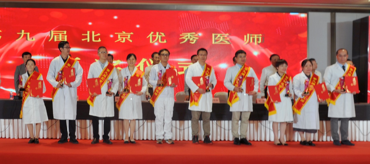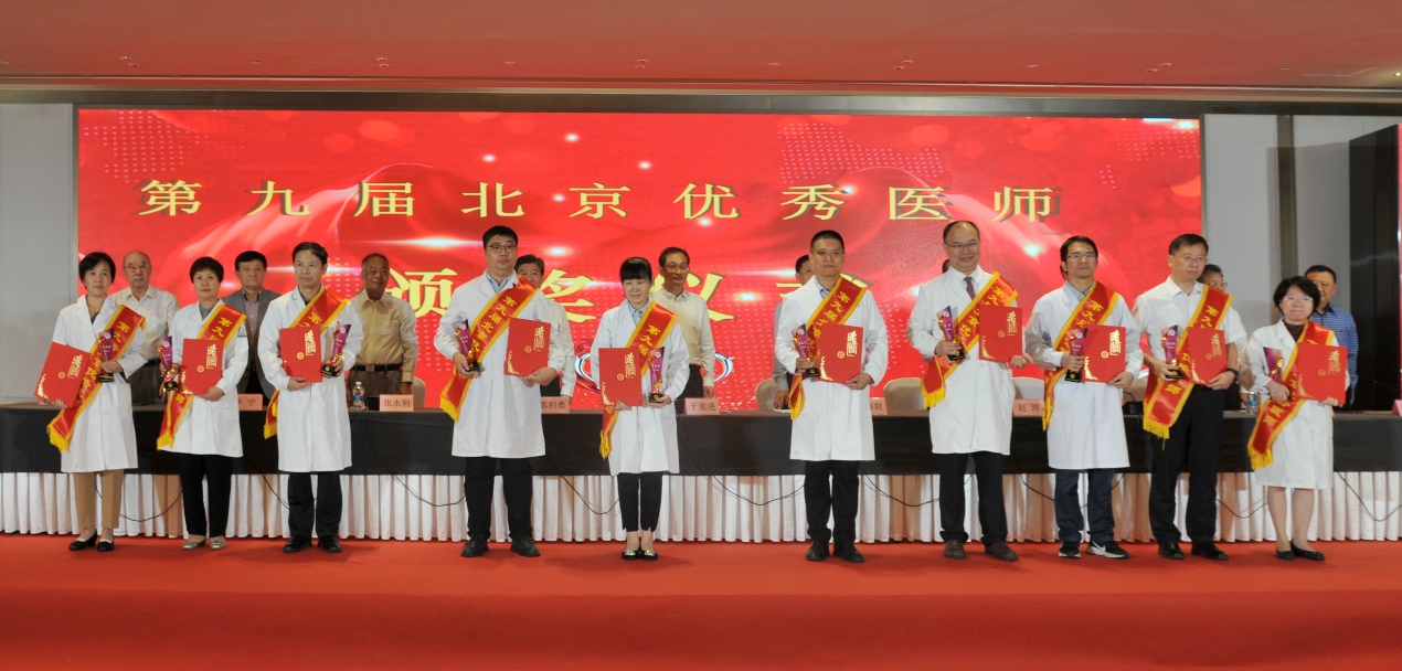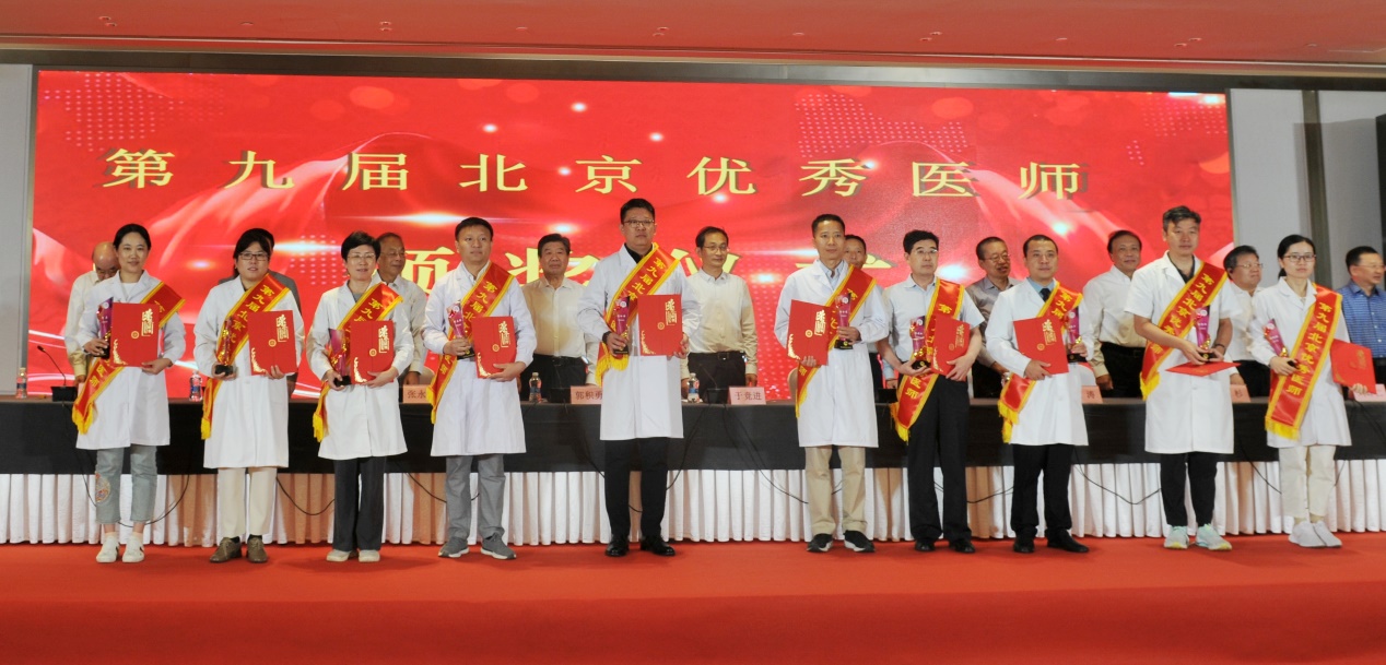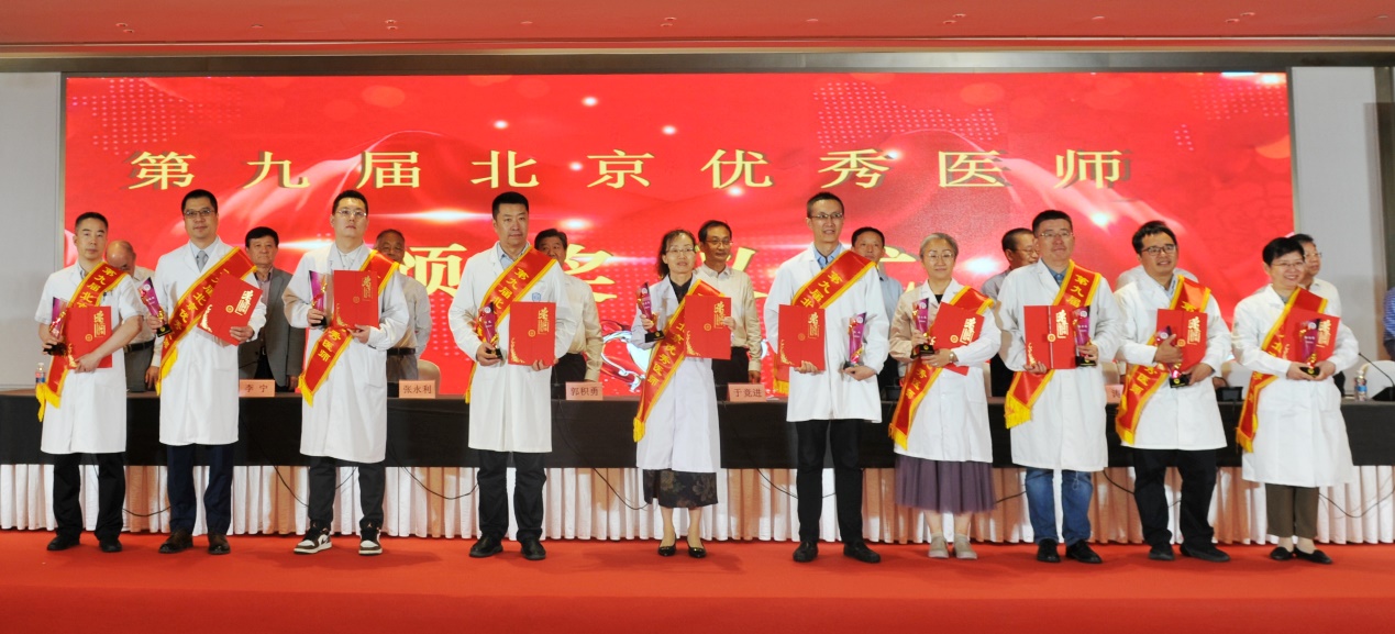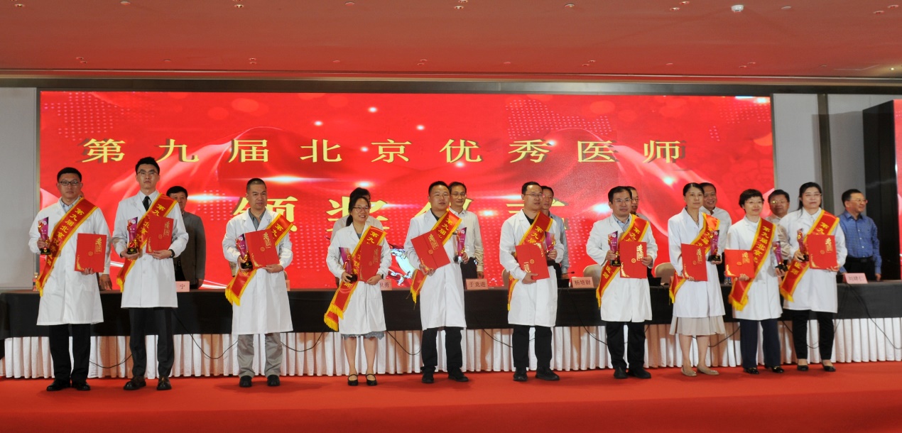 北京医师协会第九届北京优秀医师表彰大会于2024年8月28日下午在世纪金源大饭店金源厅举行。出席会议的有中国医师协会常务副会长兼秘书长于竞进、北京市卫生健康委医政处副处长杨培蔚、中国医师协会办公室主任韩峰;北京医师协会会长郭积勇、监事长赵涛、副会长张永利、副会长周保利、副会长李宁、副会长徐殿祥、副会长王杉、副会长刘肆仁;全体当选优秀医师;有关医疗机构代表;协会分支机构代表;各区卫健委代表;有关媒体代表等300余人。 大会现场 协会李宁副会长宣布《北京医师协会关于表彰第九届北京优秀医师的决定》 中国医师协会常务副会长兼秘书长于竞进发表讲话 北京市卫生健康委医政处副处长杨培蔚发表讲话 现场播放中国工程院院士、首都医科大学副校长吉训明录制的致词视频 领导致词结束后,中国医师协会领导、北京卫生健康委领导和北京医师协会领导共同向获得《第九届北京优秀医师》的医师颁发证书和奖杯,并合影留念。 颁奖后,由第九届优秀医师代表,北京大学第一医院肾内科周福德主任和北京市东城区妇幼保健院黄卉主任上台发言,介绍自己的工作经验和体会。 北京大学第一医院肾内科周福德主任发言 北京市东城区妇幼保健院黄卉主任发言 最后,北京医师协会会长郭积勇在会上发表讲话,他对北京地区广大医师发扬“人民至上、生命至上”的精神,在积极应对突发公共卫生事件,援疆援藏援外等重大考验面前,不畏艰险,甘于奉献的精神表示深深的敬意,对获奖医师表示热烈祝贺。 北京医师协会会长郭积勇