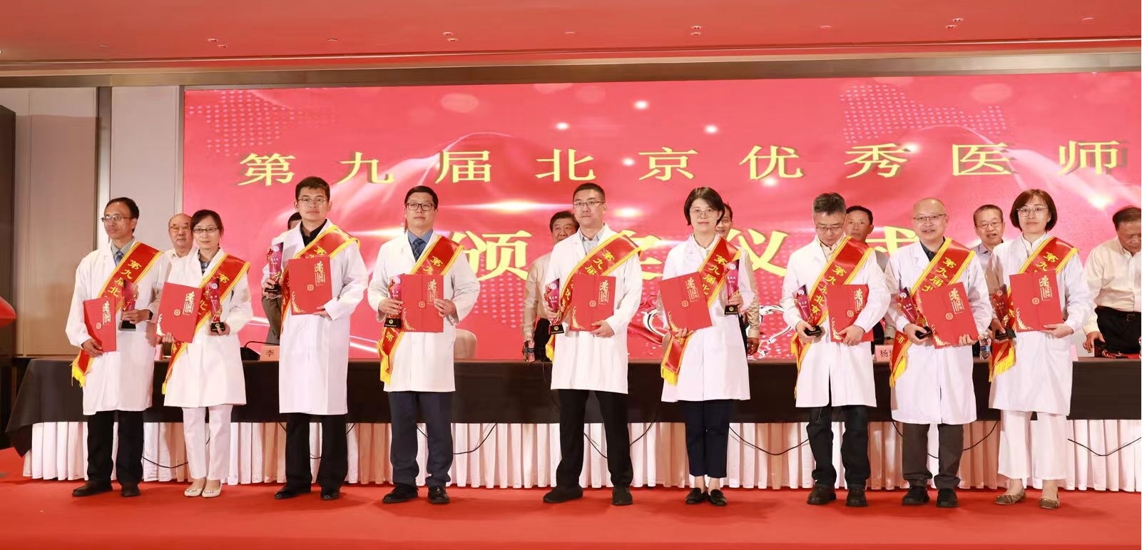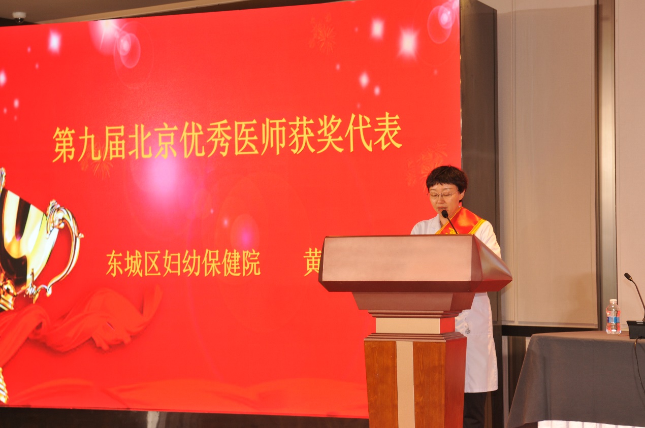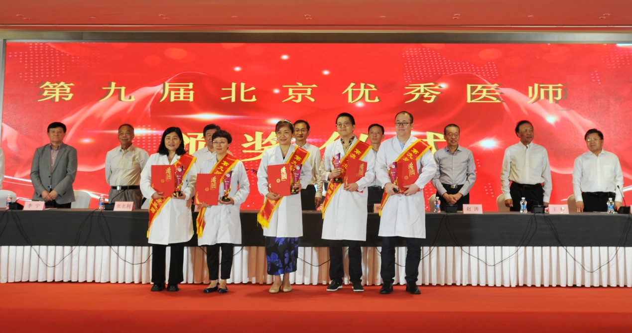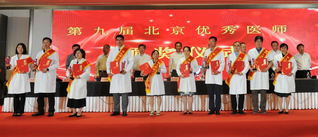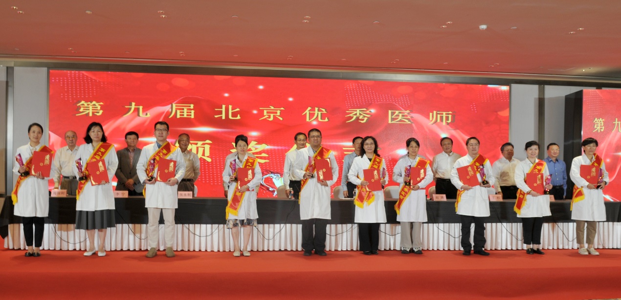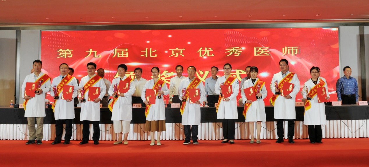 北京医师协会第九届北京优秀医师表彰大会于2024年8月28日下午在世纪金源大饭店金源厅举行。出席会议的有中国医师协会常务副会长兼秘书长于竞进、北京市卫生健康委医政处副处长杨培蔚、中国医师协会办公室主任韩峰;北京医师协会会长郭积勇、监事长赵涛、副会长张永利、副会长周保利、副会长李宁、副会长徐殿祥、副会长王杉、副会长刘肆仁;全体当选优秀医师;有关医疗机构代表;协会分支机构代表;各区卫健委代表;有关媒体代表等300余人。 大会现场 协会李宁副会长宣布《北京医师协会关于表彰第九届北京优秀医师的决定》 中国医师协会常务副会长兼秘书长于竞进发表讲话 北京市卫生健康委医政处副处长杨培蔚发表讲话 现场播放中国工程院院士、首都医科大学副校长吉训明录制的致词视频 领导致词结束后,中国医师协会领导、北京卫生健康委领导和北京医师协会领导共同向获得《第九届北京优秀医师》的医师颁发证书和奖杯,并合影留念。 颁奖后,由第九届优秀医师代表,北京大学第一医院肾内科周福德主任和北京市东城区妇幼保健院黄卉主任上台发言,介绍自己的工作经验和体会。 北京大学第一医院肾内科周福德主任发言 北京市东城区妇幼保健院黄卉主任发言 最后,北京医师协会会长郭积勇在会上发表讲话,他对北京地区广大医师发扬“人民至上、生命至上”的精神,在积极应对突发公共卫生事件,援疆援藏援外等重大考验面前,不畏艰险,甘于奉献的精神表示深深的敬意,对获奖医师表示热烈祝贺。 北京医师协会会长郭积勇